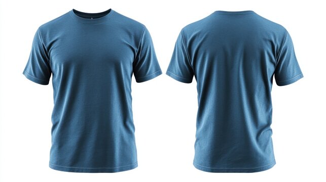 Blue t-shirt mockup, front and back views, isolated on white, design template