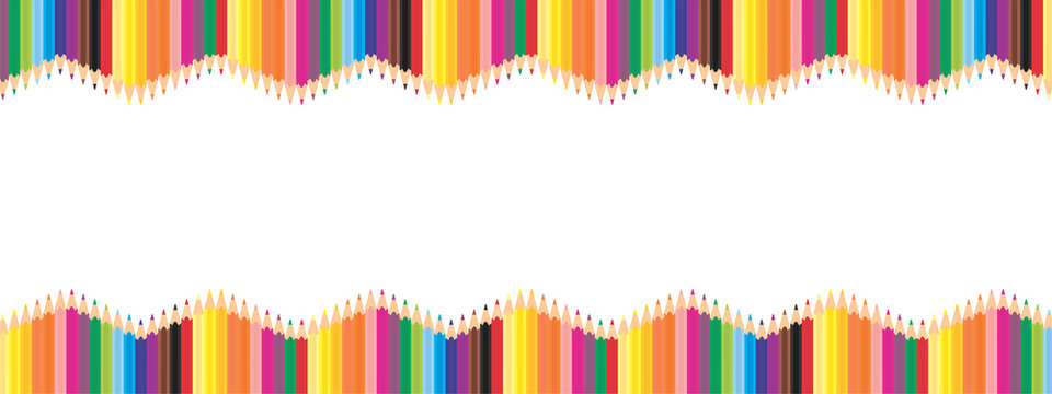 Set of colorful wooden pencils framed in a wavy form banner on a transparent background,  back to school panoramic concept.