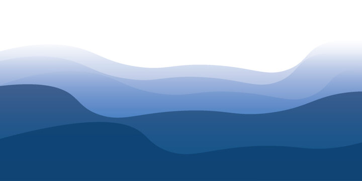 Layered waves of the blue ocean or sea with varying white gradient effects. Ideal for beach design templates. Vector water art background for summer sales or promotional banners featuring.