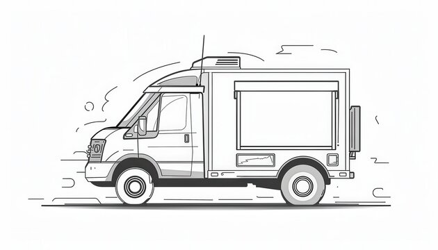 Line art illustration of a delivery truck moving fast. Ideal for delivery service logos, websites, or promotional materials.