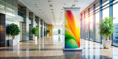 Colorful abstract graphic layout featuring stairs and circular shapes for promotional use