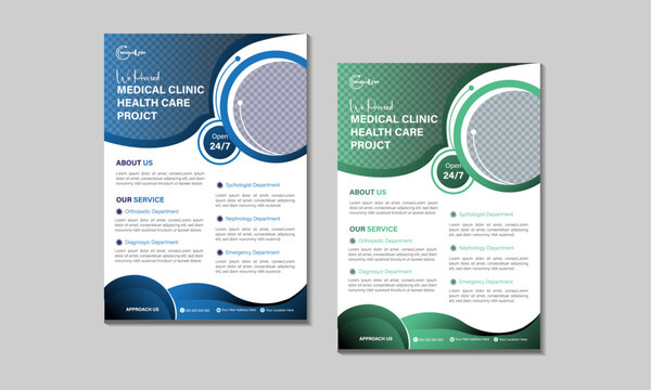 Modern healthcare Clinic Medical advertisement, corporate healthcare design , a4 template flyer leaflet or poster design layout, medical service care social media promotional ads web banner template.