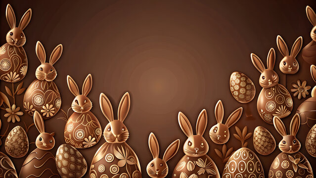 Chocolate Background with Elegant Foil Bunny Patterns and Copy Space. Perfect for: Easter, Holiday promotions, Confectionery advertising