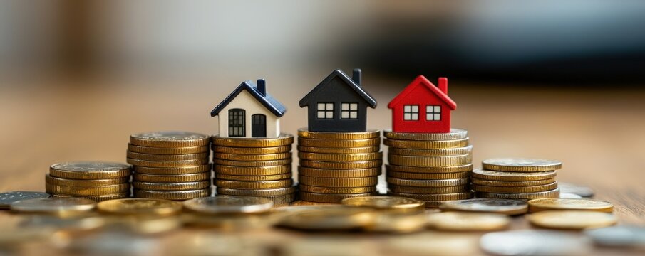Senior Couple Smiling with Home and Coins Background