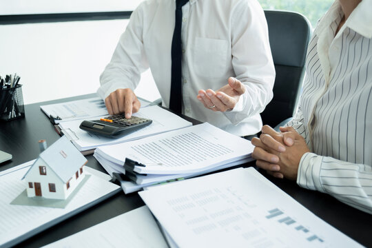 Investment planning, business Real estate concept, interest rate. Businessman shaking hands in dealing with mortgage loan home and insurance real property mortgage
