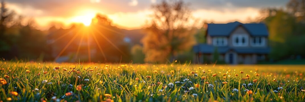 House miniature with keys in the warm morning light. Concept of real estate investment, buying a new home, and property ownership. Banner with copy space