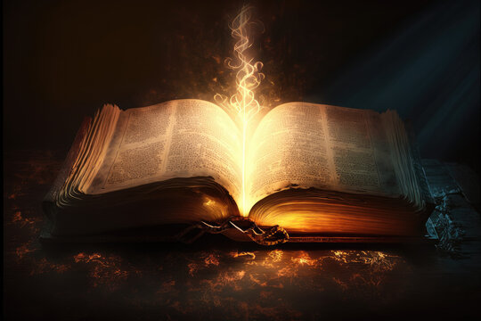 An ancient tome of magic opened and emitting miraculous sparks and smoke. Captures the captivating aura of a mystical library setting. Perfect for adding an enrichment of old-world fantasy.