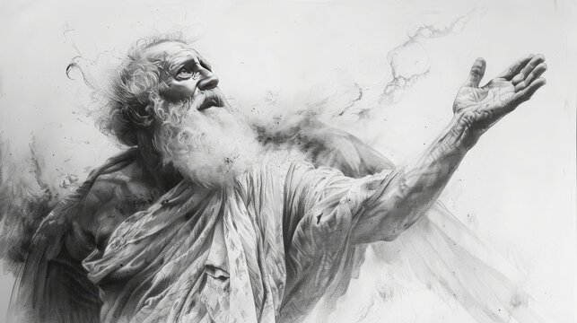 Israel's greatest prophet Elijah, bible, Charcoal pencil drawing, white background, 16:9