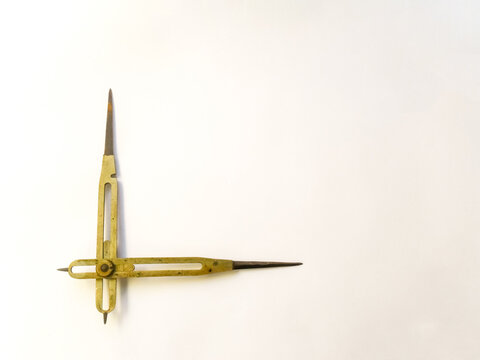 Old brass reduction compass or proportional scale divider. Geometry tool used to scale designs.