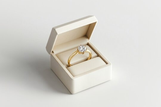 Man holding wedding ring in front of astonished happy girl covering mouth with hand. Romantic photo of charming woman standing on roof early in evening on date with boyfriend in anniversary.