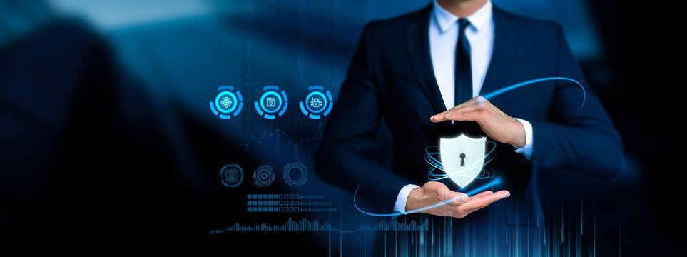 Cybersecurity privacy of data protection, businessman using laptop Secure encryption technology, security Internet access, security encryption of user private data, business confidentiality.