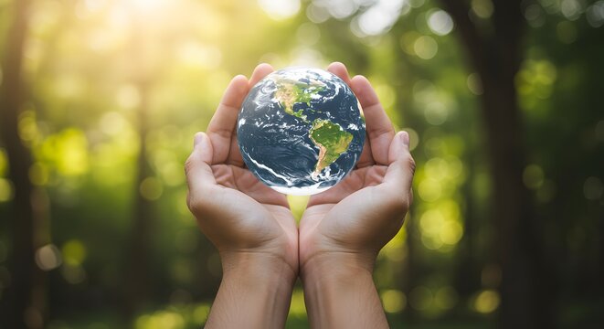 Protecting Our Planet Hands Holding a Globe in a Lush Forest, Symbolizing Environmental Conservation and Sustainable Practices for a Greener Future