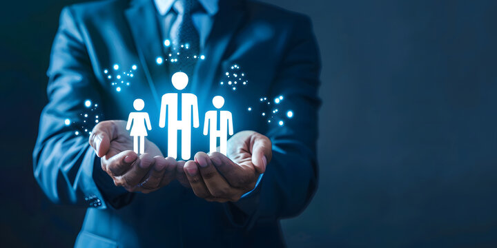 Online insurance is a is a concept. Businessman holding online insurance icon on the virtual screen for car, family, and life, financial, and health insurance design