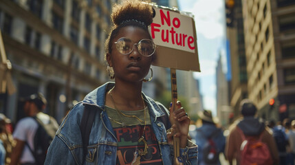 People from different culture and races protest on the street for equal rights - Focus on black man eyes