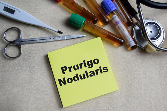 A Note with “Prurigo Nodularis” on Doctor's Desk – Dermatological Condition Concept