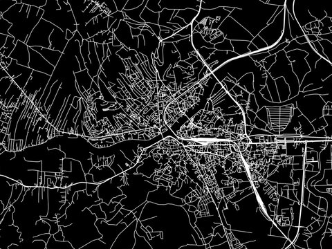 Vector road map of the city of Przemysl in Poland with white roads on a black background.