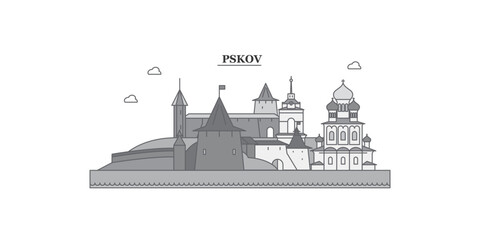 Russia, Pskov city skyline isolated vector illustration, icons