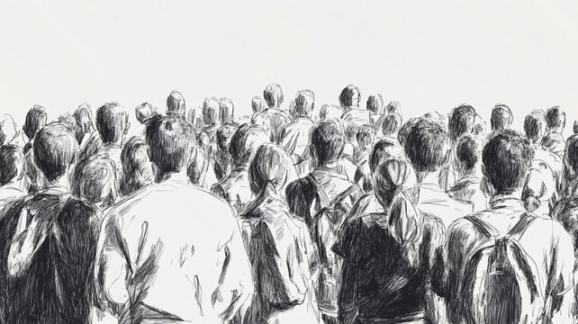 A solitary figure in a vibrant yellow suit stands out in a sea of faceless individuals, symbolizing uniqueness and individuality.