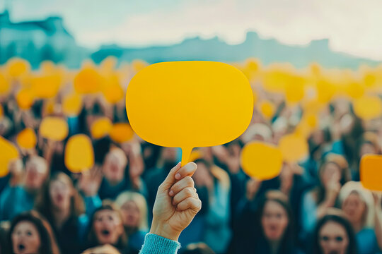 Hand gripping a megaphone ready for announcement . Concept Communication, Announcement, Loudspeaker, Public Speaking, Attention