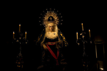 A wooden statue of the Virgin of Pain is publicly displayed before the Holy Week.