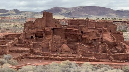 The ancient ruins of Wupatki National Monument Pueblo in Arizona, showcase the ingenuity and resilience of the ancient Pueblo people. The sandstone structures blend seamlessly with the landscape - USA