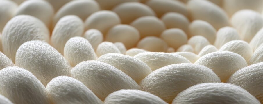 Puffy puffiness with circles and look concept. Close-up view of delicate white plant structures in soft light.