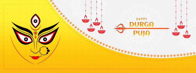 Banner, Poster or web header background design for indian festival celebration in bengal Happy Durga puja.