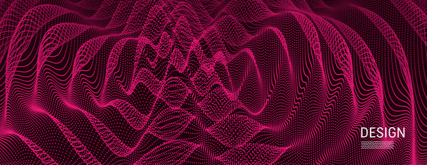 3D wavy background with ripple effect. Vector illustration with particle. 3D grid surface.