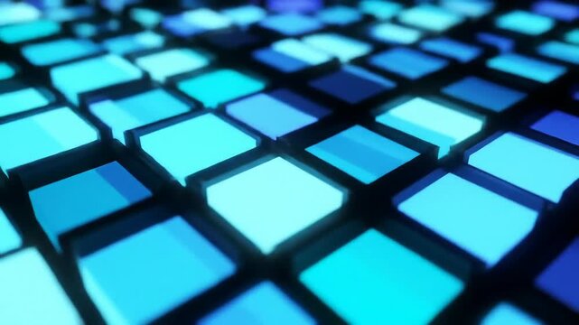 Rhythmic Blue and Cyan Digital Squares Pulsating Abstract Futuristic Background Motion Graphic