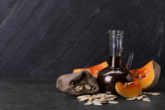 Autumn illustration pumpkins and seeds. light green background. Top pumpkin seeds falling.