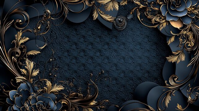 Ornate golden pun pun pattern decorative design digital art artistic space close-up luxurious visuals