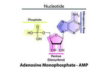 AMP - Adenosine monophosphate Nucleotide strcuture, building block of RNA molecule - sugar, phosphate and nitrogenous base.