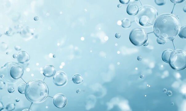 Light Blue Background with Bubbles and Molecules: Freshness and Purity for Cosmetic Products