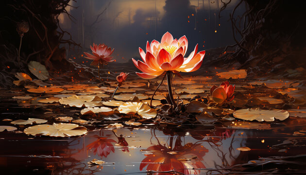 serene illustration of lotus flower on tranquil water surface emphasizing zenlike calm and spiritual symbolism