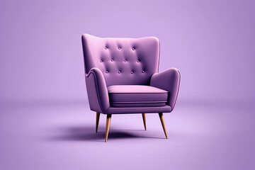Mid century purple accent armchair on lavender background