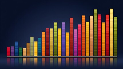 A colorful, abstract music equalizer with a gradient of red, orange, yellow, green, blue, and purple bars, set against a dark blue background with a subtle reflection.