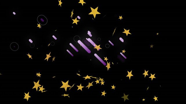 Gold stars entering causing purple bars moving tilted, forming band then fading, showing cluster