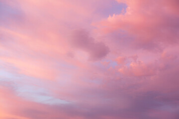 Surreal sky and purple clouds background. Fantastic heaven cloudscape.