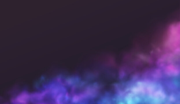 Realistic blue and purple smoke on a black backdrop, lit by neon light with dynamic movement. Abstract vector background featuring vibrant purple neon colors.