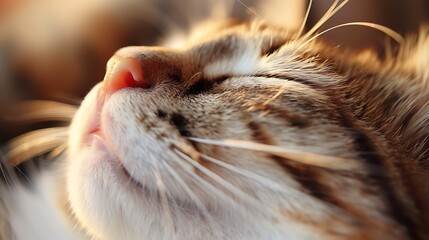 A calm domestic cat with closed eyes purring softly as it is being petted highlighting the moment of pure relaxation and affectionate bond with its owner
