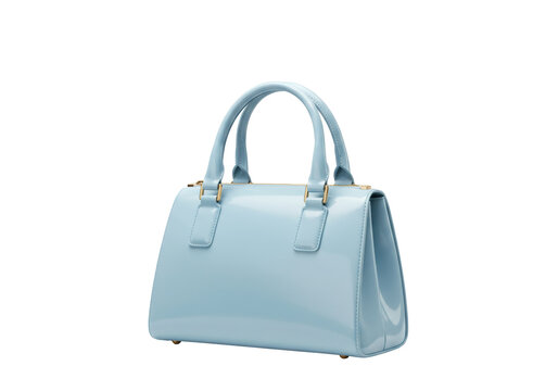Isolated light blue patent leather top handle purse accessory for fashion and style use