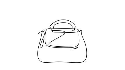 Animated self drawing of continuous line draw Lady's hand bag. Women's bag. Full length one line animation. 4K
