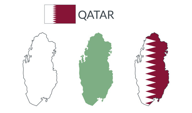 Qatar geographical borders isolated on white background. Flag of Qatar. Vector flat cliparts.