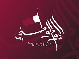 Qatar national day banner poster landing page celebration with landmark and flag in Arabic translation: qatar national day 18 th december.