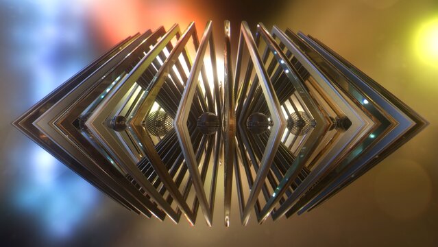 Rotazione di quadri inclinati oro ed argento con sfere in metallo vario