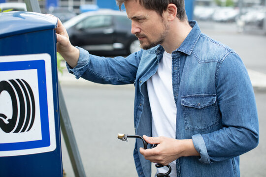 Service Maintenance car inspection Measure quantity Inflated Rubber tires car closeup hand holding machine Inflated pressure gauge car tyre pressure measurement automotive automobile Check car travel