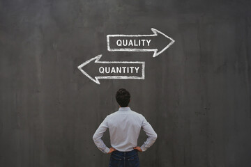 Quality vs quantity, management to assure excellent work outcome, working attitude to deliver superior result concept.