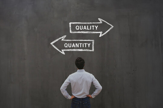 Quality vs quantity concept, performance and efficiency, business strategy choice