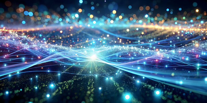 Cosmic Energy Flow: A mesmerizing spectacle of vibrant lights, ethereal waves, and sparkling particles, portraying the dynamic flow of cosmic energy in a breathtaking digital artwork.