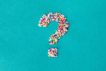 White question mark symbol on blue background. Problem, solution, confusion counseling